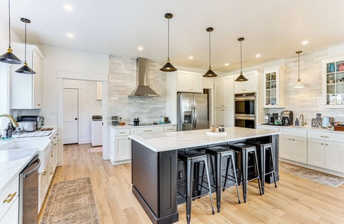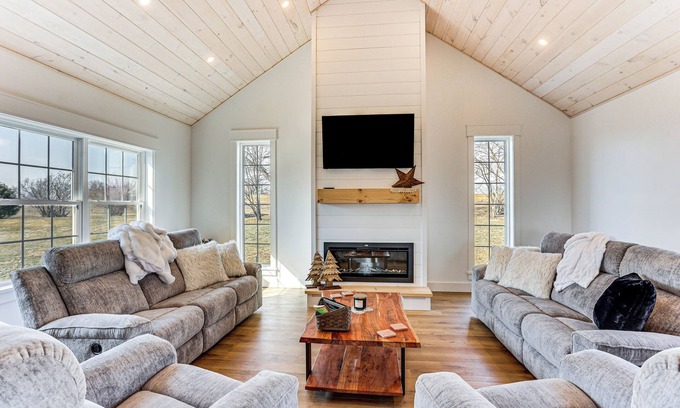 Step into 'Pristine Pastures,' a 5-bedroom, 2.5-bath vacation rental in the heart of Lancaster. Start the day admiring the panoramic view as you plan the day's adventures. Then, travel the backroads and visit country stands, take a ride on the Strasburg Railroad, and visit Kitchen Kettle Village with the family. In the evening, return to the chic, modern farmhouse and soak up the countryside on the cozy porches!