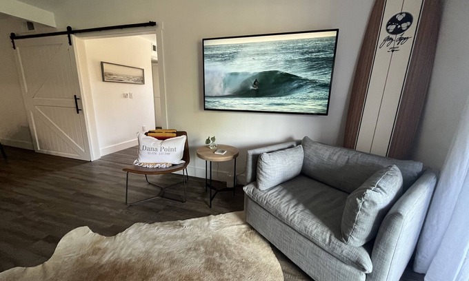 Freshly renovated beach condo. Brand new everything. Ideal location for everything in Dana Point. Just a few minutes' walk to Doheny Beach in Dana Point as well as shops (like Jack's Surf Shop) restaurants (like Maison Cafe and Market) and the Dana Point Harbor. Fresh, clean, and modern with beachy vibe. Enjoy the sounds of the creek outside the balcony and the lush tropical landscaping and grounds surrounding the property. Also enjoy a beautiful and quiet pool and hot tub. Get the best that Orange County has to offer in this perfect location. Laguna Beach to the north and San Clemente to the south, you are within a few minutes to some of the best surf spots, beaches, shopping, restaurants, water sports, etc. Thirty-Day rental, come and go as you please. BONUS: Skip the rental car and ask about vehicle available for additional fee!