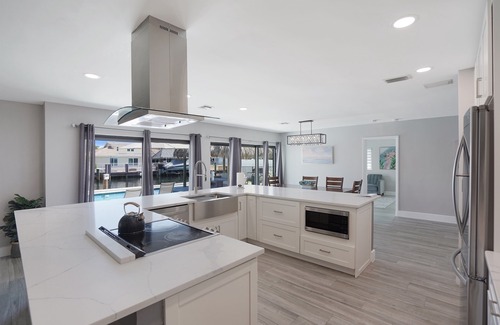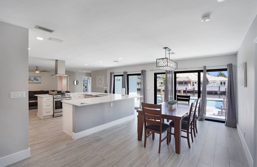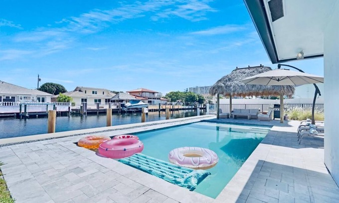 The house has gorgeous views of the intercoastal and the waterfront pool. A free shuttle will even pick you up at the house!! Relax outside in the lounge area under the covered tiki hut. The home features a chef's kitchen and a separate kosher kitchen area, 2 living rooms, 4 bedrooms with smart TVs, 3 bathrooms, and an open floorplan with the kitchen and dining room facing the beautiful waterfront views. There is a boat dock on an 80-foot-deep canal with direct ocean access and no fixed bridges. Come park your boat! Fresh and clean home in a family-friendly, quiet, walkable neighborhood. Upscale safe neighborhood. Just a 15-minute walk to beautiful beaches and tons of amazing restaurants. The pool is $45.00 a day to heat. We need 24 hours notice. Must be paid for the entire duration of your stay.