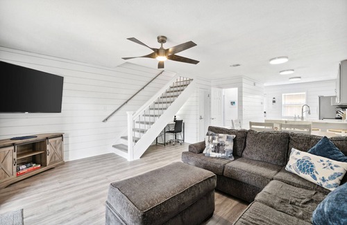 Your ultimate PCB getaway awaits at Sandy Souls beach condo! Avoid the parking garage traffic and long elevator waits at this newly renovated townhouse that is conveniently located in close proximity to all the great restaurants, attractions and shopping (less than a mile from Shipwreck Island Waterpark, a hop, skip and jump to the shops at Edgewater and just 2.5 miles from Pier Park) the area has to offer. This condo is dog friendly upon host approval and pet fee added to reservation. Sandy Souls is a short 5-minute walk to the soft white sandy beaches of the Emerald Coast (public beach access 44 & 45). This two-story townhouse offers 2 bedrooms and 2 full bathrooms, a full kitchen, laundry room and charcoal BBQ pit. This is the place you'll want to come back to every time you visit Panama City Beach!