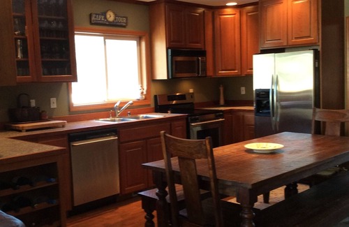 3 bedroom, 2.5 bathroom ski cabin with bonus room and game room, including foosball table and air hockey table. Guest room with king size bed on main floor. Bunk room with two twins and full size bed on main floor. Master bedroom with king bed and private deck on upper floor. Two futons on bottom floor game room will sleep two guests. Deck with BBQ on main floor. No WIFI available.