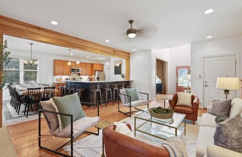 Welcome to the Pet-Friendly Retreat: Relax w/HotTub, Custom FirePit & Walk to Town/Trails!, an elegant 7-bedroom, 4-bathroom haven nestled in historic Purcellville, Virginia. This stylish retreat is designed with wedding parties in mind, accommodating up to 20 guests for your special occasion. With its luxurious yet functional layout, indoor and outdoor entertaining spaces create a romantic setting for your big day, ensuring lasting memories with family and friends.