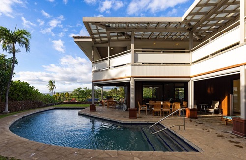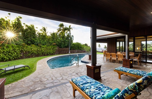 Resort-style amenities in private serenity. Live the Hawaiian dream with multiple outdoor dining areas, a grill, and your own private pool. There’s even an outdoor shower for rinsing off after beach adventures. Located near Waialea Bay in the Puako area, the home offers access to ocean activities such as snorkeling, swimming, and beachcombing.