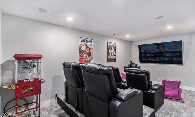 ✔ Private Movie Theater – Cozy seating & large screen for movie nights 🎬