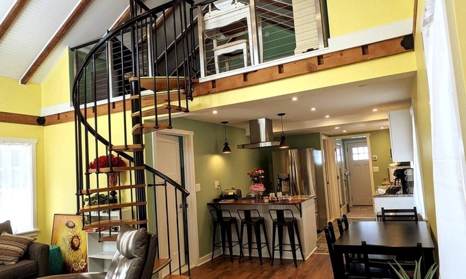 Elmwood Village Cottages: Discover Buffalo's iconic Elmwood Village in two meticulously renovated 1872 cottages. Nestled near Elmwood & W Utica, a 91 Walk Score with access to 100+ restaurants, shops & more. Key-code self check-in, exposed rafter ceilings, open-concept living/kitchen and modern amenities. Rest on memory foam and unwind in jet spa tubs. Complimentary supplies, laundry, WiFi, and ROKU TV. Park 4 cars, public transit, and proximity to Niagara Falls for a perfect Buffalo retreat.