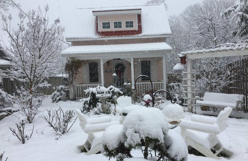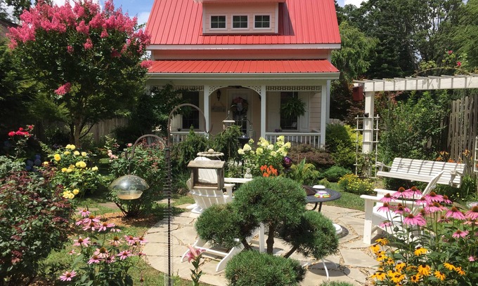 Right out of "Southern Living", large bedroom with queen bed, Laura Ashley linens, wonderful 1920's bedroom suite, fully equipped kitchen. Smart TV, cable with Netflix, all the channels. Front porch with dinning table and four chairs, additional seating with view of the garden and mountains. Gas and charcoal grill. Charming little cottage for folks that desire a luxurious and comfortable place to relax and marvel at these wonderful mountains. Come, stay with us at "The Country Girl" and you will know, you are , "Truly Blessed".