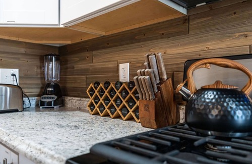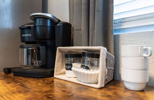 The spacious kitchen offers everything you need to cook your favorite meals or try something new. With ample counter space, stainless steel appliances, and a complete spice rack, you're set up for success. The dedicated coffee bar includes a Keurig, French press, pour-over, and drip coffee maker, with K-cups, sugar, and creamer ready for your morning brew.