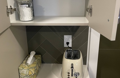 High end kitchen fully stocked. Dishwasher. Laundry. Primary bedroom w/ queen size bed and walk in closet. 2nd bedroom w/ queen size bed. Living room - queen size sofa bed. Two 50 inch tvs for streaming services. Quiet neighborhood.