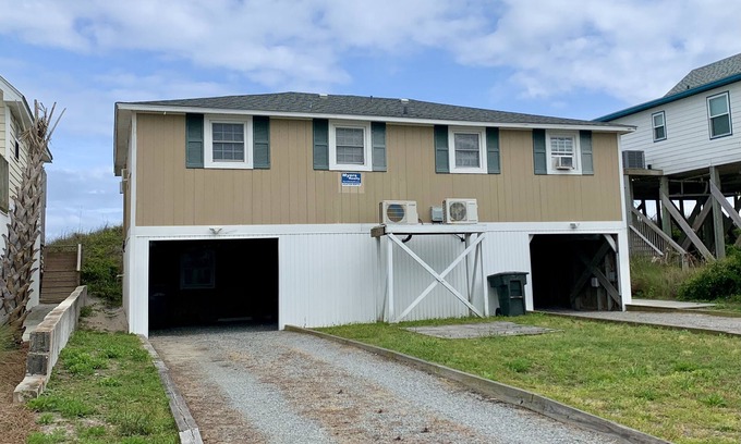 This cozy recently updated north side duplex offers two bedrooms (one queen bed, and two twins) and one bath. Sleeps 4. The cottage has an open living/dining kitchen combination with great oceanfront location! Ocean and dune views, private walkway to beach, parking for three vehicles. Covered deck for enjoying the breezes. Small stacked washer/dryer in the cottage. Sorry no pets in this side of cottage (pets allowed in the other side of duplex) and this is a no smoking home or on the decks. Wonderful Topsail Beach location.
