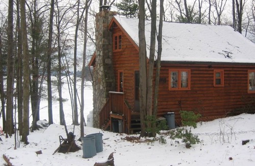 Pocono mountain cabin on beautiful Lake Wallenpaupak in northeast Pennsylvania, fieldstone gas log fireplace, picture window looks down 7 miles of water. Private dock and kayak (May till Mid October), electric heat and a/c, fully furnished including washer and dryer. WiFi is available. Skiing, hiking, and horseback riding nearby. Close to Victorian town of Hawley, PA with restaurants and antique shopping. 'Claws and Paws' zoo in the woods for the kids. Visit our website for more information!