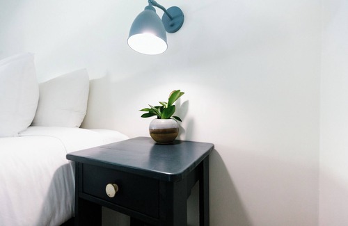 Welcome to Walnut Cottage! This room features a king bed, kitchenette with seating for two, and bathroom with a clawfoot tub shower combo. Laurel Cottage can accommodate up to 2 guests. Amenities include: 320 sq. ft, King Bed, Kitchenette with Sink, Mini Refrigerator, Microwave, Coffee Maker & Electric Kettle, Premium Coffee, Tea & Cocoa, Bathroom with Clawfoot Tub, Flat Screen Television, Mini-Split Heat & Air Conditioning, and BlueAir Air Purifier.