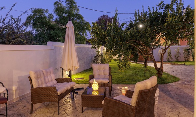 Enjoy our beautiful garden under the shadow of a walnut tree. Corfu old town is 20 minutes walk but the bus stop is outside of the house! The location is perfect for bicycles in case you don't have a car.