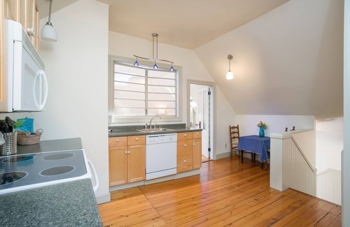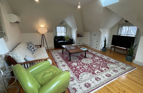 This spectacular 750 sq. ft. E. Side apartment is a 5-min walk to Brown, RISD, downtown and the train station. Occupying the entire top floor of a Victorian home, the private entrance apartment melds old and new into a beautiful living environment. 5 skylights light up hardwood floors, exposed brick, unique architectural features, a great room, one sunny bedroom, modern kitchen and bath. A futon couch can sleep 2 additional guests. A park with a running track and tennis courts is across the street.