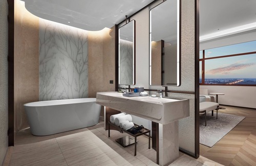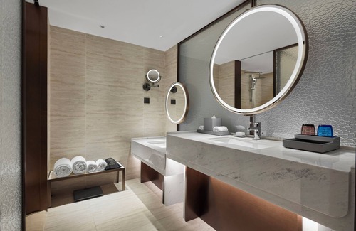 Wanda Jin Ordos offers 235 accommodations with complimentary bottled water and slippers. Accommodations offer separate dining areas. Beds feature down comforters. 65-inch LCD televisions come with smart speakers.