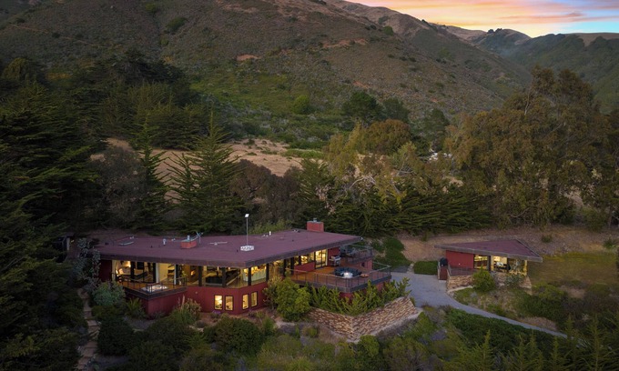 Wander Big Sur Coast is a contemporary architectural masterpiece with a mid-century modern vibe and breathtaking ocean views. This stunning retreat features both a main house and a separate guest house, offering ample space and privacy for your group. Inside, you'll find a game room with a poker table, a movie room perfect for cozy nights in, and a fully equipped gym. Nestled on the enchanting Big Sur South Coast—where the Santa Lucia Mountains meet the blue Pacific—this coastal escape invites you to experience never-ending sunsets, cascading waterfalls, scenic hikes through pristine trails, and ruggedly beautiful beaches.