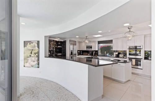 Perched high in the Cahuilla Hills, Wander Palm Springs Canyon is a mid-century marvel straight out of a James Bond movie. This unique half-moon-shaped home features a stunning circular pool and offers breathtaking panoramic valley views through expansive glass walls. With private patios and a split floor plan, it perfectly balances 1960s charm with modern luxury, offering a true Palm Springs lifestyle experience.