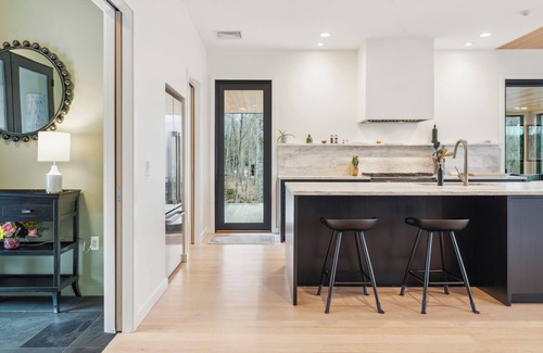 Wander Stowe Hollow is a modern retreat with breathtaking views of Mount Mansfield offering luxurious amenities and abundant space for relaxation and entertainment. This five-bedroom sanctuary features four patios, a deck, and outdoor dining, perfect for enjoying the scenic beauty and al fresco meals. Indoors, you can find a fully equipped kitchen with high-end appliances, complemented by a game room with a ping-pong table, foosball, and board games.