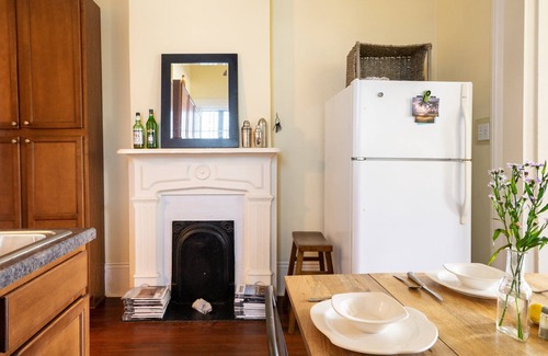 Sit on the painted front porch of an Italianate shotgun house in the birthplace of Jazz. It has been renovated for modern conveniences but plenty of Victorian charm remains in the original fireplaces, wood trim, and claw-foot tubs.