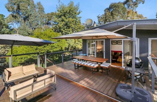 Welcome to our spacious 3 bedroom, 2 bathroom double story retreat nestled near Lake Eildon. With 2 queen bed and 2 bunk beds, our home comfortably sleeps 8. Enjoy breath taking views from the large deck, and revel in the convenience of a fully equipped kitchen. Linen supplies are provided for a hassle free stay. Experience comfort and serenity in every corner of our inviting abode.