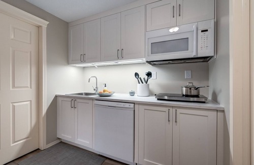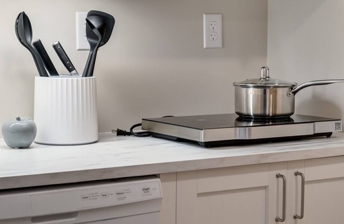 As you settle into this 1-bedroom, 1-bathroom rental, you'll find a living room, a BBQ grill, a fireplace, and air conditioning. Bathroom amenities include a hair dryer, towels, and toilet paper. The kitchen is equipped with an oven, a refrigerator, and a dishwasher, as well as a coffee maker, an electric kettle, and a microwave. And because there's a washer and dryer, you can go a bit lighter on your packing. Other amenities include bed sheets, heating, and a dining table.