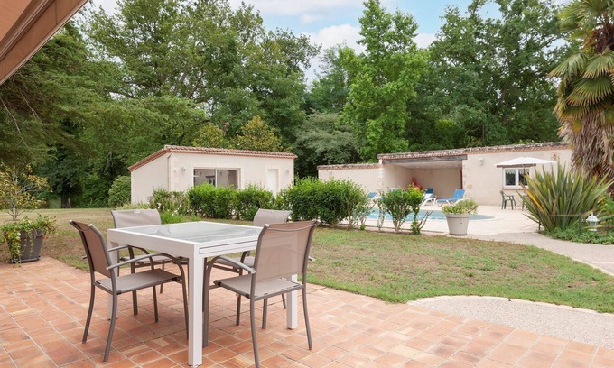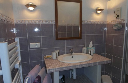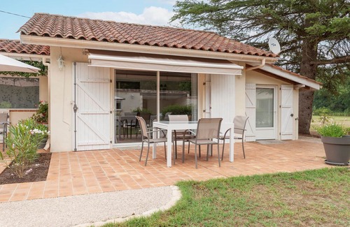 Located on the ground floor with terrace, overlooking the swimming pool and the park, and garden furniture. It is an 18m2 room decorated in natural colors mixing beige and white and old wood, warm, soft and bright. You will offer a cozy and soothing atmosphere. The shower room adds a purple and white touch to the whole, it is equipped with a basin on a large worktop, and a large walk-in shower. We provide you with welcome products, towels, and hair dryer .. You will find all the comforts for a pleasant stay: very comfortable bedding, (queen size bed (160X200cm), a closet, with wardrobe and shelving, 2 armchairs and a coffee table, a small desk with welcome tray, flat screen TV 70 cms, an electric cooler if you want to have a picnic. The toilets are independent from the shower room. You will also find documentation on the sites and things to see and discover in the region.