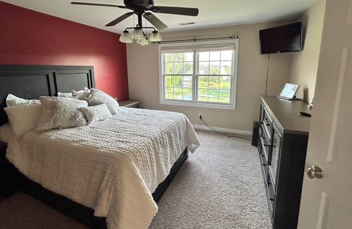 Do you want to have a relaxing time stress free? Then this is the perfect place for you. We have a very peaceful and quiet neighborhood with a beautiful view of a field. There are also paths for walking so you can go and enjoy your morning or afternoon jog on a nice peaceful track