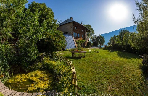 In a peaceful little mountain hamlet, with a balcony overlooking the valley and panoramic views of the mountains, a spacious, comfortable and warm ecogite with its woodwork and larch beds.