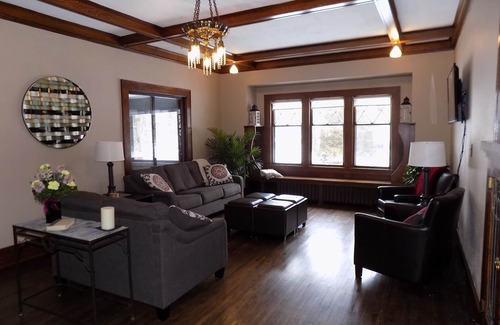 We invite you to come & enjoy our century old prairie style craftsman home. Our family has enjoyed bringing new life to this comfortable, spacious and historic house. Once here you'll find beautiful beamed ceilings, and handcrafted woodwork so reminiscent of this style.