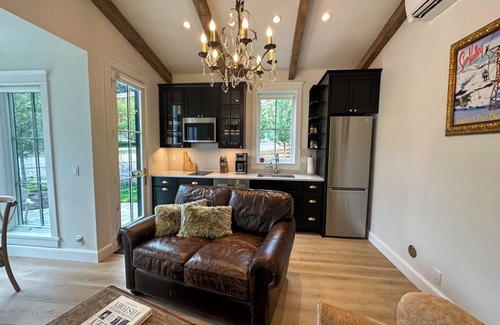The chalet is an architect designed, luxury, detached guest house blending old world charm with modern conveniences & styling. The furnishings are tasteful, modern French farmhouse with some vintage pieces to add warm and character. There is a cobble stone front porch with amazing ski slope views where skis, poles, snowboards and bikes can be stored. A cobble stone rear patio with Adirondack chairs provides a peaceful setting to take in the stunning mountain views and sunsets. All the spaces have been designed for comfort and enjoying the awesome setting. In summer time, enjoy the heated community pool and pickle ball/tennis court, 100 yards from the Chalet. In winter time the ski slopes of the world famous Sun Valley Resort are located 200 yards from the Chalet, providing convenient access. The highest level of guest satisfaction and cleanliness are the priority. For additional amenities, send message to owner.