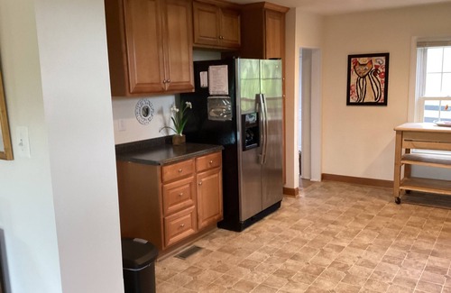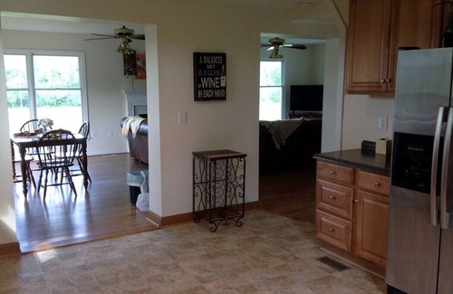 You will find all of the comforts you expect in this lovely home. There is a new kitchen that opens to a huge living and dining room with lots of windows, and two decks, so that you can enjoy the unlimited views. There is also a room where you can enjoy board games with your friends or family or perhaps sit and read a good book. There are two bedrooms upstairs and a master bedroom on the main floor. There are two full baths. One off master bedroom 1st floor, 2nd in finished basement next to laundry area. There are many attractions right on the farm itself. Enjoy walking trails along the River and through the meadows. There are kayaks, canoes, to swim or fish, and end with a cookout at the pavilion. Build a fire and roast marshmallows where you enjoy gazing at the millions of stars you never knew were there. Also, you will like exploring the many hiking trails in the National Forest and enjoying the stunning views. Kayak tours on the river are also available.
