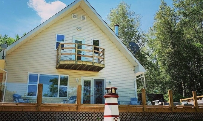 Bring the whole family to this amazing and private Cottage on 1.5 acres of waterfront property on the popular Washademoak Lake. We are experienced hosts who have been sharing our slice of paradise as a rental on other platforms for over a year, and take pride in being a super host and guest favourite! Relax in the hot tub or enjoy the sunrise from the spacious wrap around deck. Kayak or paddle board the calm waters in the cove, swim out to the raft, or dock your boat on 200 feet of water front. During the winter you can enjoy skating on the pond that is also on the property, or explore the larger lake. Ice fishing, snowshoeing and cross country skiing are other popular activities in winter.