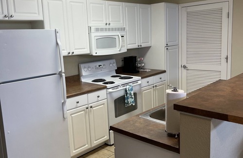 Each apartment provides a kitchen with a refrigerator, an oven, a stovetop, and a microwave. For a bit of entertainment, an LED TV comes with digital channels, and guests can also appreciate conveniences like a washer/dryer and a sitting area. Weekly housekeeping is available.