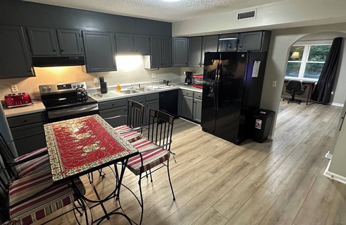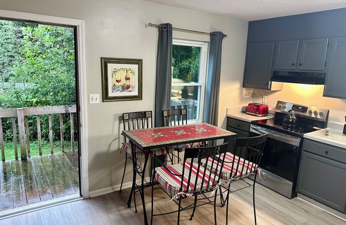We furnished this unit like we would if we were living there. Very comfortable & sturdy furniture. Comfortable mattress, super soft linens, sheets & towels. Kitchen stocked with what you need for making great meals. New as of January 2023: LVP flooring, interior paint, Smart TV, rugs, washer/dryer and LED light fixtures. Located near Catawba Valley Med. Ctr, Frye Regional Med. Ctr, LRU, Downtown Hickory & shopping.