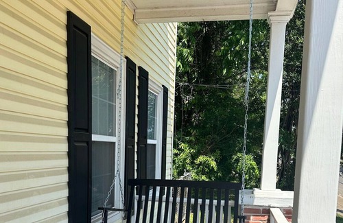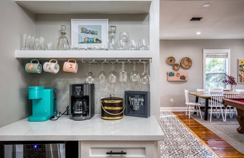 100 year old home located steps from downtown Brenham! You will love the recent renovations that enhance this gem! The hardwood floors are original to the house and the large bedrooms will nicely accommodate your group. The open downstairs space and backyard are perfect for larger groups. Many people love hanging out in the main area where your group can all enjoy cooking in the kitchen, playing pool, or lounging in the living room area. The interior has a fun decor that your group will love! You may decide to hang out in the backyard where your group can grill, gather around the fire pit, sit in the swings, play corn hole, or relax on in the outdoor seating area. You will also love the location of the house. The house is walking distance to all of the fun shops, restaurants, live music venues, and wine bars that downtown Brenham has. The house is only 1.5 miles from the famous Bluebell Creamery.