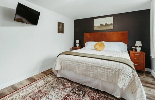 Under new ownership! This room was just completely furnished with all new bedding, decor & furniture.