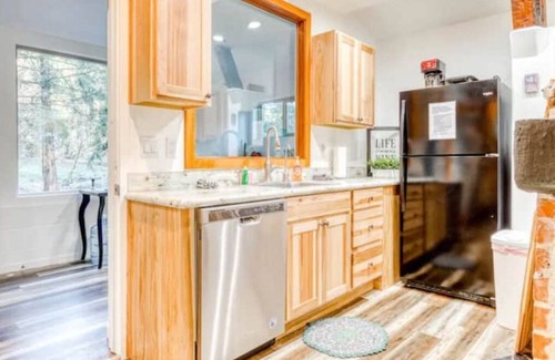 There is 1 bedroom downstairs with a king bed. The couch in the living room also opens to a bed. The upstairs has a queen bed and a twin. The water is well water. It is filtered and has a softener, but is to salty for drinking. Their is plenty of bottled water for drinking and cooking. The well water is fine for showering. Their is also a reverse osmosis tap at the kitchen sink that is also fine for cooking. Even though the property is a bit remote, we do have neighbors, but at a distance. Their are no houses across the river. The cabin is great for relaxing and enjoying the forest and scenery. Their are many hikes and places to swim a short drive from the cabin. There is also a great Mercantile store for groceries, deli food, hot food options and take home bake pizzas about 3 min from the cabin. The cabin has been recently renovated so everything is fairly new. The cabin has 3 bedrooms, 1000 square feet, with a full kitchen. For A/C and heat, we have a new HVAC, a fire stove and a washer and dryer. When it snows in Washougal the driveway may be difficult to exit as it has an incline. If there is a lot of snow and you don’t have chains I would suggest parking at the top of the driveway and walking down to the cabin, so you can exit without driving up the incline.