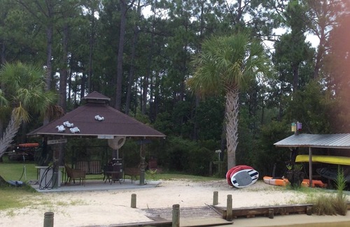 Completely Renovated and Remodeled ! Are you tired of staying in a cookie cutter condo and fighting for a space on the beach? If so, look no further than Papa Roy's Paradise! Papa Roy calls his paradise the Peace & Contentment Lodge or the P&C Lodge. His mantra is 'Do nothing and rest afterwards.' Located on Spring Branch just off of Perdido Bay, Papa Roy's Paradise is a little slice of heaven. You can drink coffee in the glassed porch and watch for dolphins or relax with a cocktail on the beach and view the sunset. Inside, there are two bedrooms, a large living area, a fully equipped kitchen, and a spacious glassed/screened porch. For your outdoor pleasure, there are kayaks, paddle boards and even a slide on the dock. On the white sandy beach, there is a gazebo with a sitting area and a grill. Bring your boat and fishing gear! With a little luck, you can catch fish and crabs. In ten minutes, by boat or car, you can be at Pirate's Cove enjoying one of their cheeseburgers in paradise and drinking a world famous bushwhacker. Also, there are many other restaurants located in the area that specialize in local seafood. The sugar sand beaches of Gulf Shores and Pensacola are a short drive away. Fresh fruit and vegetable stands abound in the area! The butchers at the Elberta Grocery will cut your filet, t-bone or porterhouse to order and wrap it in wax paper. They also make and sell the finest sausage in Baldwin County.