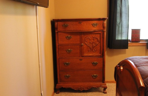We can accommodate up to four people comfortably. We prefer children to be at least 8 years of age and older please!! There is a gas log stove in the living room area and wouldn't wish a younger child to touch it and get burnt!!