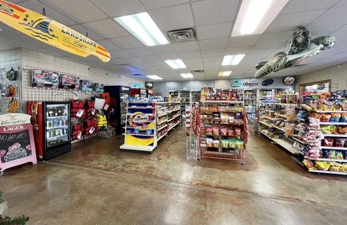 Outdoor grill and an excellent semi secluded location at Bass Hollow . Fully stocked store onsite, fuel dock and boat ramp.