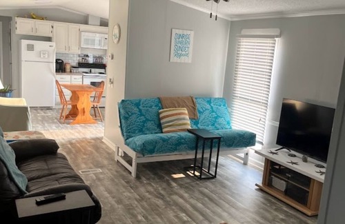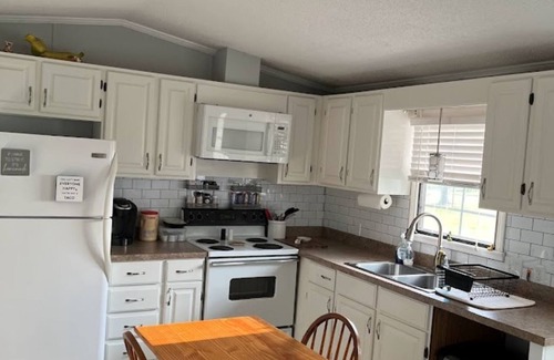 Welcome to Dream Weaver which is a fully renovated single-wide mobile home on a private lot. A private dock allows for GREAT FISHING or SWIMMING and BEAUTIFUL VIEWS. (Boat ramp is 5.3 miles from the house in Aurora and if you love to hunt this is the place to come.) Enjoy sunrises and sunsets on the large deck facing Bond Creek. Kayaks, firepit, picnic table, and grill for outdoor dining. Enjoy the quiet on the water away from your busy life. Due to the secluded area there is not internet or cable service however there is a TV antenna and DVD movies provided as well as board games and outdoor adventures. Come relax on Bond Creek at Dream Weaver.