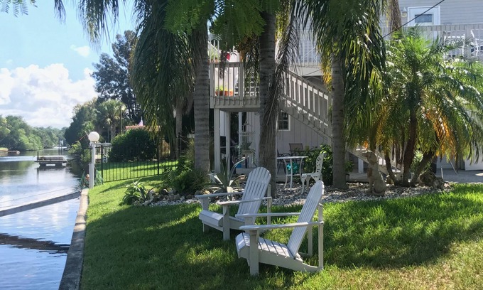 Beautiful view from 2 floor of the house located on canals access to Gulf of Mexico enjoying fishing amazing sunset over wildlife kayaking through mangroves watching manatees occasionally dolphins. The place is souranded by restaurants with live music (5 minutes drive )2 miles to public beach or 2 miles to popular SunWest outdoor water park ideal for family fun spending day on blue water laguna beach. Entire 2 floors of the house 1350 sf 3 bedrooms,2 bath, kitchen, living room, laundry room plenty of space inside the house or outside on wrap around porch or yard. 2 kayaks available, fishing on the dock or on the side of the house, watching amazing sunsets and grilling on porch just relaxing. 20 miles to Clearwather 15 miles to Weeki Watche to state park with crystal clear spring water ideal for family fun swimming kayaking or one &only live Mermaid show. We do live on main floor. Interacting with guests thru email phone text messages 24/7 anytime is needed.