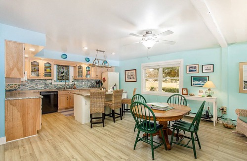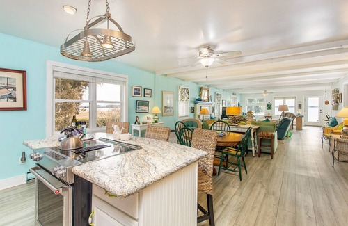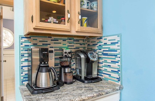 For cooking, you can enjoy our amazing chef's kitchen with single oven, dishwasher, and fully stocked with dishes and utensils, including toaster and coffee/tea bar. You can also cook outside on our gas grill or charcoal grill. If dining inside, you can entertain guests at our kitchen table/dining bar or enjoy the water views at our second dining table.