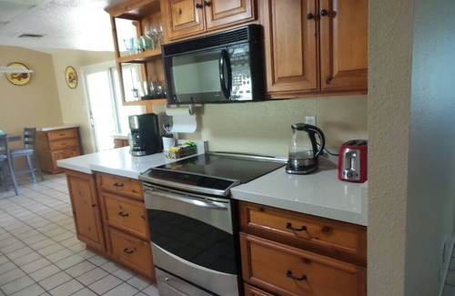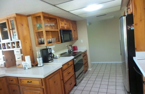 WATERFRONT-HOUSE ON THE LAKE Enjoy this house on the lake Three bedrooms, two bathrooms, formal living room, dining room, and open space kitchen, fully furnished on a quiet neighborhood within minutes to everything! Enjoy your meals on the patio or end the day relaxing while enjoying the view of the lake. Refrigerator with ice, grill for your barbecue outside, and everything you need to cook delicious meals during your visit. washer and dryer available also available. NEW PUTTING GREEN for your enjoyment and renew backyard with turf all over.