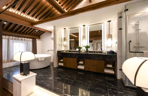 Water Hotel Pingyao offers 16 air-conditioned accommodations, which are accessible via exterior corridors and feature minibars and safes. Each accommodation is individually furnished and decorated. Tempur-Pedic beds feature Frette Italian sheets, down comforters, and premium bedding. 40-inch LCD televisions come with cable channels. Bathrooms include showers with rainfall showerheads, bathrobes, slippers, and designer toiletries.