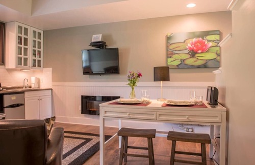 Spring Water Cottage houses two separate & private suites - Water Lily Suite & Mountain Laurel; identical accommodations under a single roof,but separated by an interior breezeway that assures total privacy. Hot, gourmet breakfast delivered to your door daily. Wet bar equipped for light fare, snacks & beverage prep. Not suitable for full meal prep. WIFI & Basic Cable; Roku-ready,if you desire.
