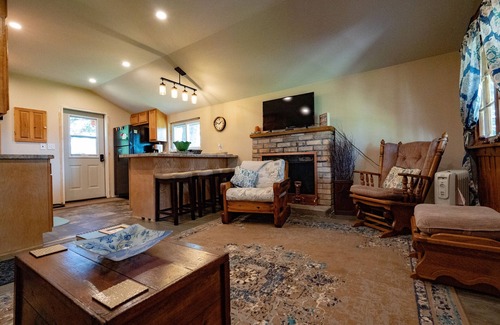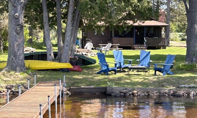 Just off Chipmunk Trail for quick access to trails for walking and biking. We do accept dogs, please advise w/pet at time of booking. We ask they do biz on roadside, not lake side (it kills the grass), picked up after, leashed at all times and please don’t leave them for long period of times, as the cabin is not a kennel.