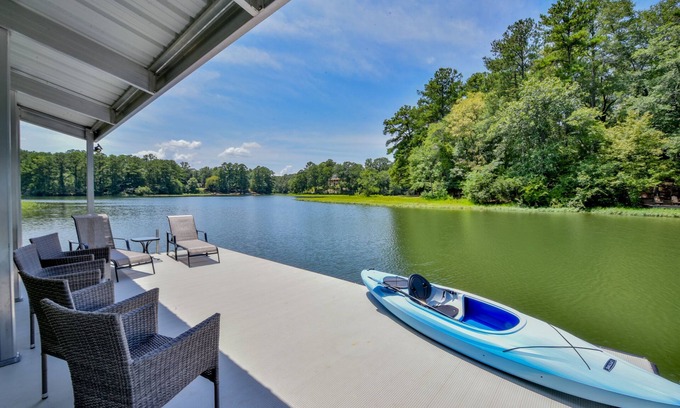 This beautiful lake house is a 4 bedroom, 3.5 bath house. It is located 13 miles North of Bryant Denny stadium in Northport. You may park up to 6 cars in the driveway. The house has a dock as well as an amazing deck/porch that overlooks Lake Tuscaloosa! There is also a covered deck with a built in fire pit and stairs that take you straight to the dock. Of course there are lake supplies, including 2 kayaks, 2 paddle boards and a floating water pad for added fun and entertainment, as well as plenty of floats and water toys!
