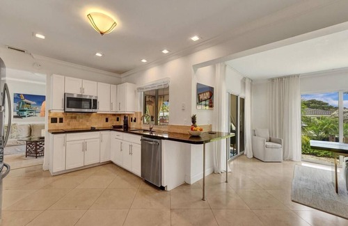 Welcome to Water's Edge-Luxury house-walk to beach- Heated pool- Dock, an exquisite 5-bedroom retreat that sets the stage for your dream wedding in Pompano Beach, Florida. This stunning property boasts a spacious open layout, ideal for large groups or families, and provides a picturesque backdrop for your special day. With its elegant charm and modern conveniences, you will find everything necessary to create unforgettable memories while celebrating love with family and friends.
