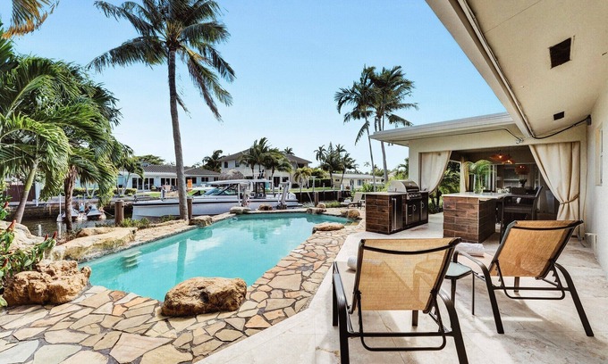 Beach Activities: Experience the sun, sand, and surf just a short walk from Water's Edge-Luxury house-walk to beach- Heated pool- Dock. Whether you prefer lounging under an umbrella or engaging in thrilling water sports, Pompano Beach provides the perfect backdrop for your wedding stay.