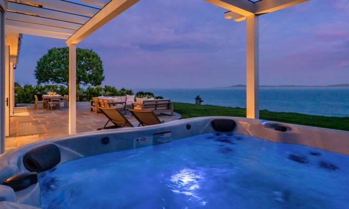 This newly built 4 Bedroom, 4.5 Bathroom, 3,600 square foot home, offers unparalleled ocean, island, and mountain views including 85 feet of coastal frontage. Every piece of design was carefully thought out from the vaulted ceilings, massive bi-folding doors, Italian-style chef’s Kitchen, and custom light fixtures. There are Dual Primary Suites that each include a large Ensuite Bathroom, walk-in closet, fireplace, and ocean views, while the two other Guest Rooms also have their own private Bathrooms. The effortless indoor-outdoor flow opens up to a backyard dreamscape with a hot tub, firepit, outdoor dining table, and several seating areas, all with panoramic ocean views. Pop open a glass of local wine and enjoy the sights of migrating whales and swimming dolphins at sunset.